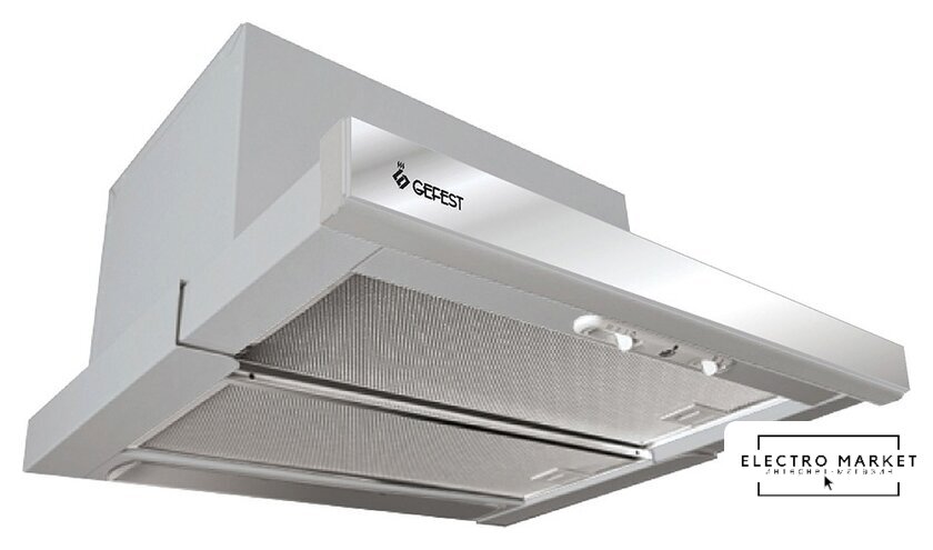 конструкция скрытая, монтаж для встраивания, ширина 59.8 см, управление механическое/кнопочное, производительность мотора 850 м³/ч, цвет белый