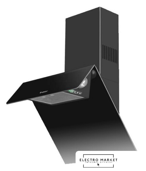 конструкция купольная, монтаж настенный, ширина 59.8 см, управление механическое/кнопочное, производительность мотора 800 м³/ч, цвет черный