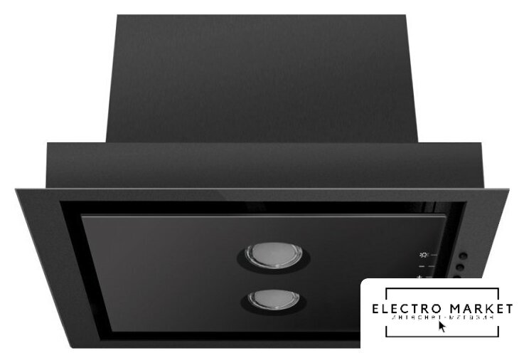 конструкция скрытая, монтаж для встраивания, ширина 52 см, управление механическое/кнопочное, производительность мотора 500 м³/ч, цвет черный