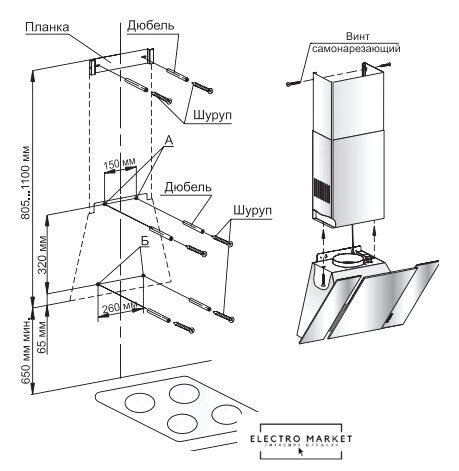 конструкция Т-образная, монтаж настенный, управление сенсорное, производительность мотора 1000 м³/ч, ширина 60 см