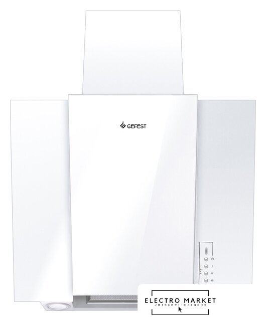 конструкция наклонная, монтаж настенный, ширина 59 см, управление электронное/кнопочное, производительность мотора 700 м³/ч, цвет белый