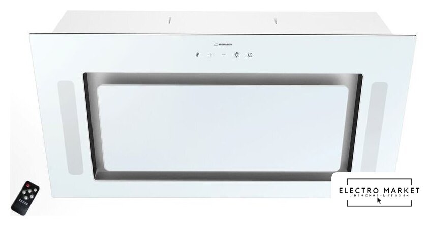 конструкция скрытая, монтаж для встраивания, ширина 52 см, управление сенсорное, производительность мотора 900 м³/ч, цвет белый