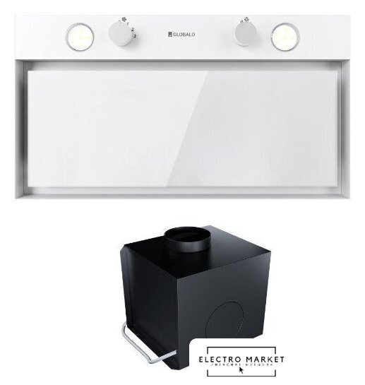 конструкция Т-образная, монтаж настенный, ширина 90 см, управление сенсорное, производительность вытяжки 402 м³/ч, цвет черный