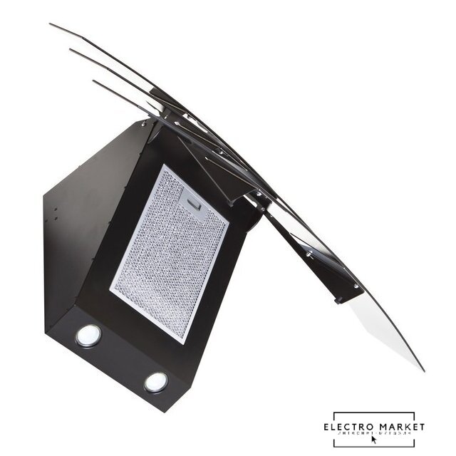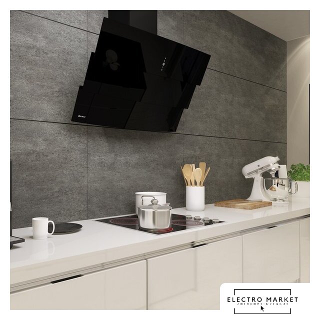 конструкция наклонная, монтаж настенный, ширина 60 см, управление сенсорное, производительность вытяжки 655 м³/ч, цвет черный
