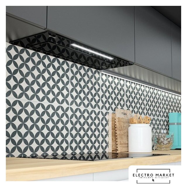 конструкция скрытая, монтаж для встраивания, ширина 51.4 см, управление электронное/кнопочное, производительность вытяжки 690 м³/ч, цвет черный