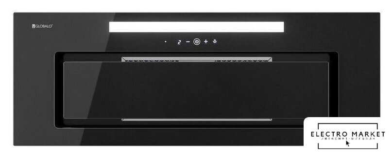 конструкция наклонная, монтаж настенный, ширина 75 см, управление сенсорное, производительность вытяжки 655 м³/ч, цвет черный