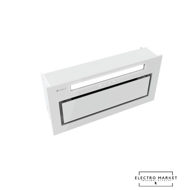 конструкция скрытая, монтаж для встраивания, ширина 77 см, управление электронное/кнопочное, производительность вытяжки 580 м³/ч, цвет белый