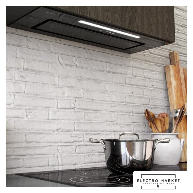 конструкция наклонная, монтаж настенный, ширина 59 см, управление сенсорное, производительность вытяжки 430 м³/ч, цвет черный