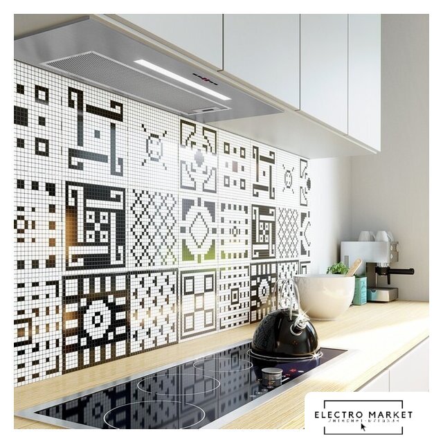 конструкция скрытая, монтаж для встраивания, ширина 71.4 см, управление электронное/кнопочное/дистанционное, производительность вытяжки 550 м³/ч, производительность мотора 1200 м³/ч, цвет черный