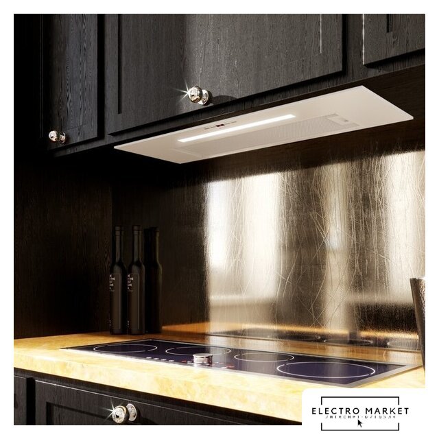 конструкция коробчатая, монтаж островной, ширина 38 см, управление электронное/кнопочное, производительность мотора 1000 м³/ч, цвет бежевый