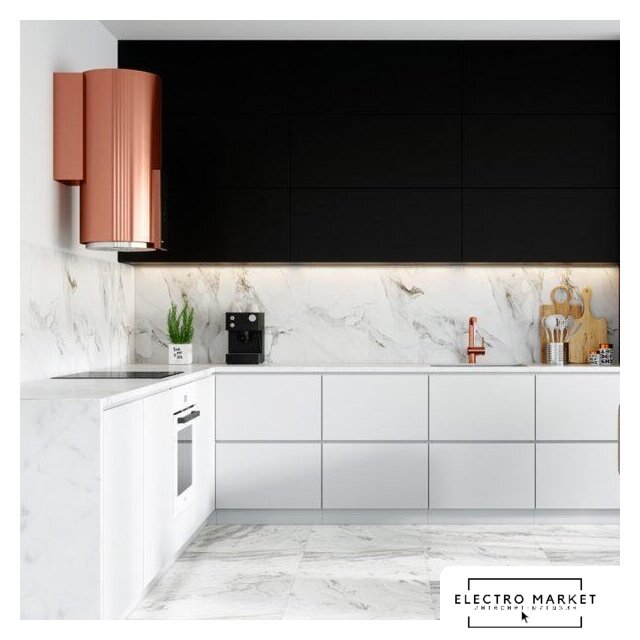 конструкция наклонная, монтаж настенный, ширина 55 см, управление электронное/кнопочное, производительность вытяжки 650 м³/ч, производительность мотора 1200 м³/ч, цвет белый