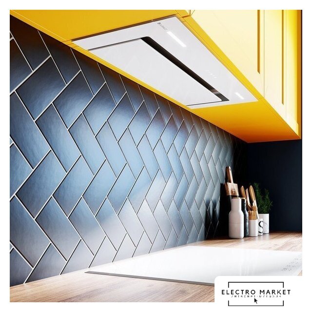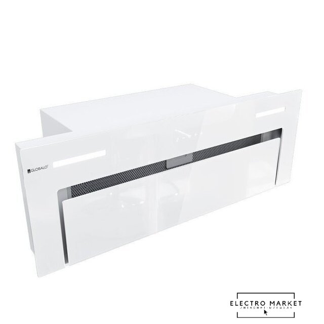 конструкция скрытая, монтаж для встраивания, ширина 55 см, управление жестами/дистанционное, производительность вытяжки 390 м³/ч, цвет белый