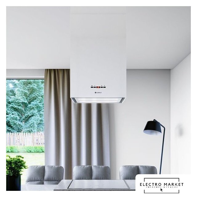 конструкция коробчатая, монтаж островной, ширина 59.8 см, управление электронное/кнопочное, производительность мотора 610 м³/ч, цвет нержавеющая сталь
