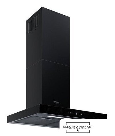 конструкция коробчатая, монтаж настенный, ширина 39 см, управление механическое/кнопочное, производительность вытяжки 570 м³/ч, цвет черный