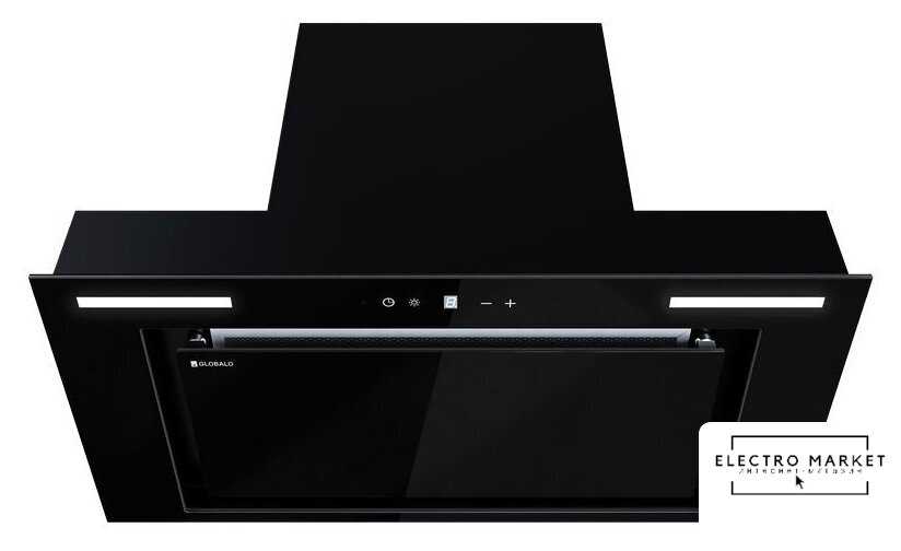 конструкция наклонная, монтаж настенный, ширина 89.6 см, управление сенсорное, производительность вытяжки 575 м³/ч, цвет черный