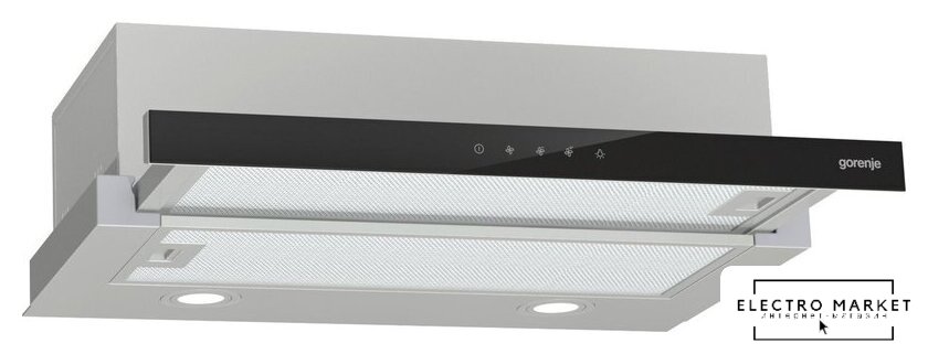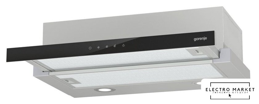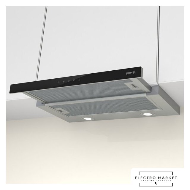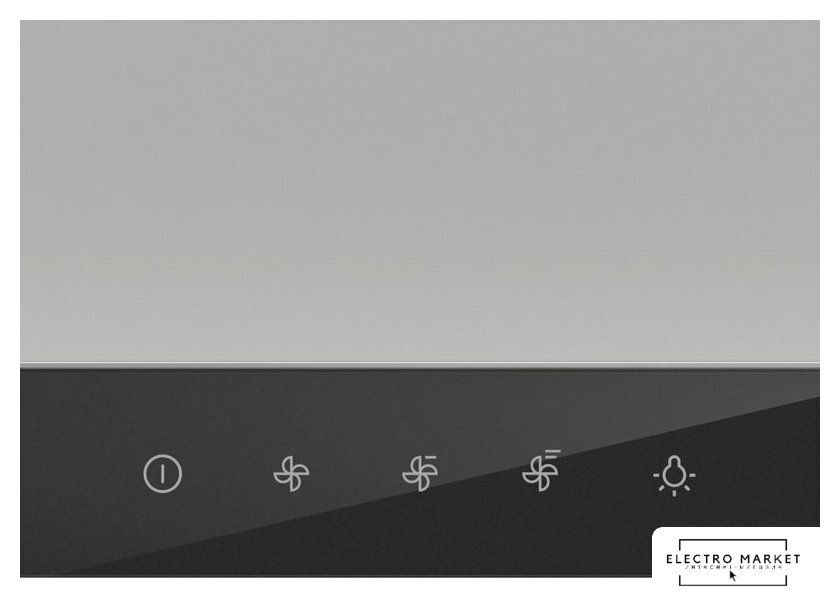 конструкция наклонная, монтаж настенный, ширина 59.5 см, управление сенсорное, производительность мотора 750 м³/ч, цвет черный