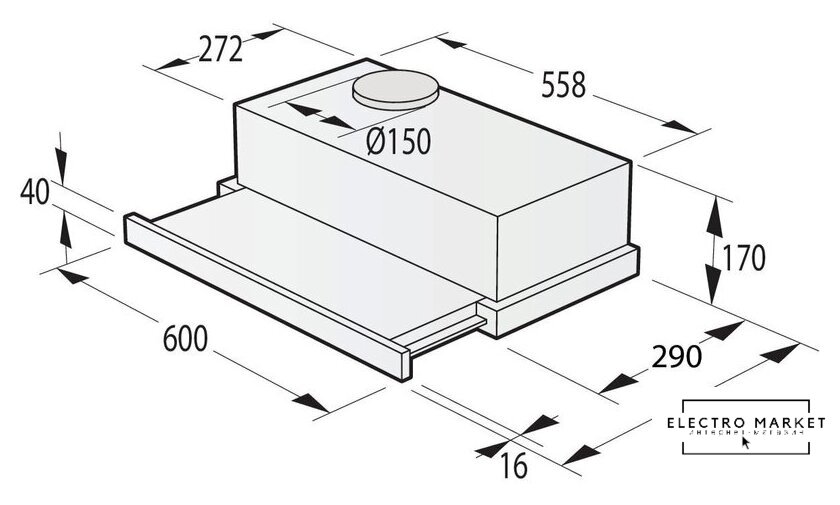 | Минимальная производительность отвода | 150 куб. м/ч |