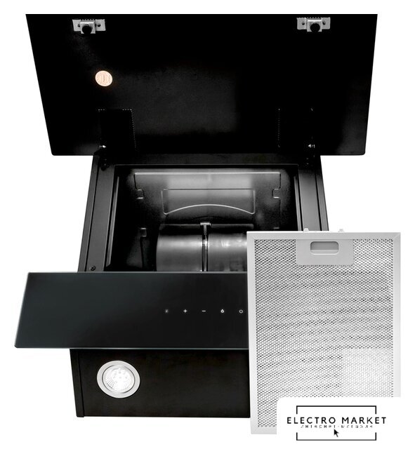 конструкция телескопическая, монтаж для встраивания, ширина 60 см, управление сенсорное, производительность мотора 850 м³/ч, цвет черный