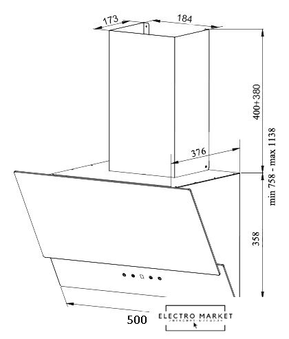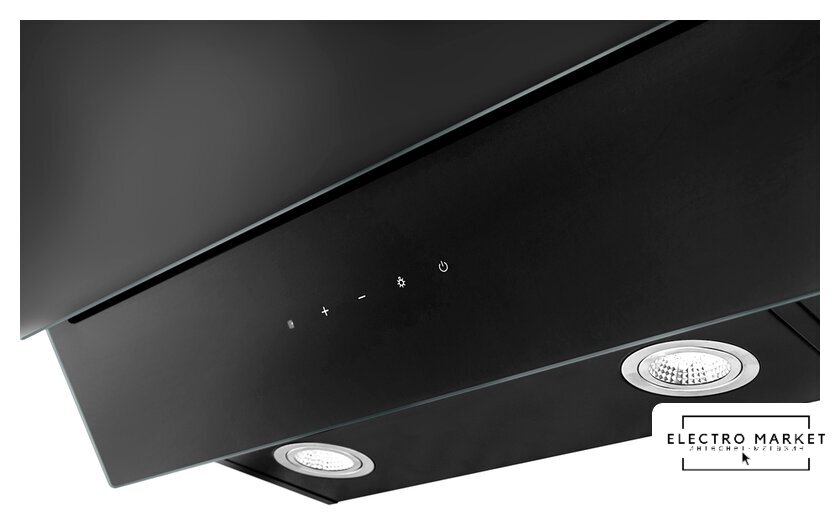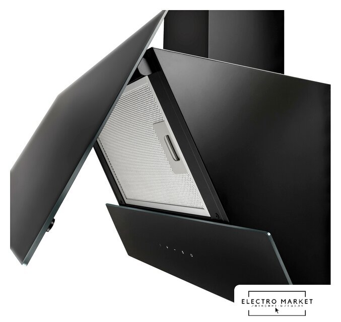 конструкция наклонная, монтаж настенный, ширина 59.5 см, управление механическое/кнопочное, производительность мотора 650 м³/ч, цвет черный