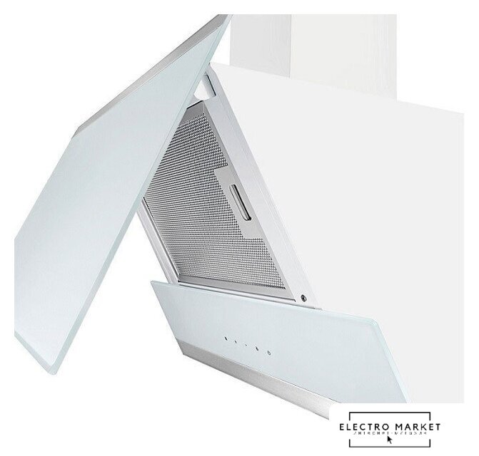 конструкция наклонная, монтаж настенный, ширина 89.5 см, управление сенсорное, цвет нержавеющая сталь/белый