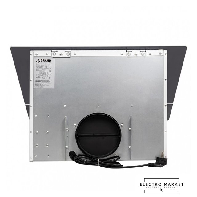 конструкция наклонная, монтаж настенный, ширина 60 см, управление механическое/кнопочное, производительность мотора 850 м³/ч, цвет нержавеющая сталь/черный