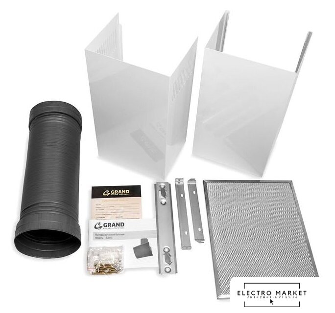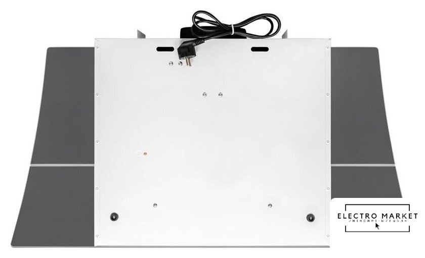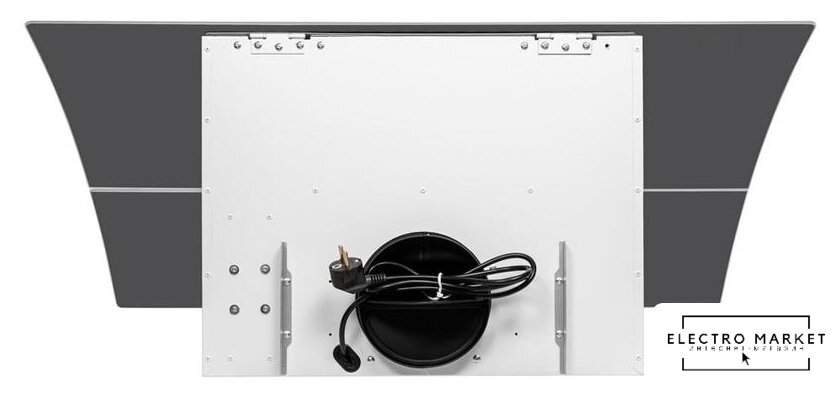 конструкция наклонная, монтаж настенный, ширина 60 см, управление электронное/поворотный переключатель, производительность вытяжки 450 м³/ч, цвет серый