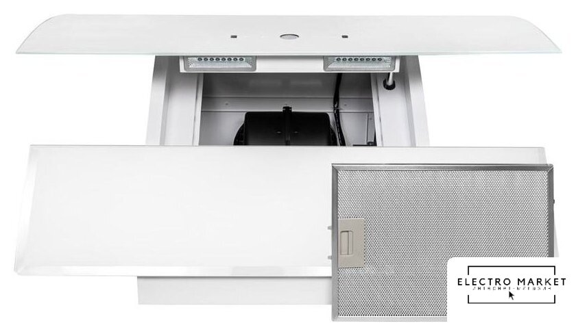 Дополнительные функциональные особенности | Перед началом работы вытяжки, фронтальная панель автоматически открывается. |