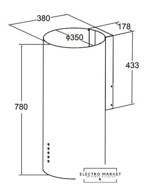 конструкция коробчатая, монтаж настенный, ширина 54 см, управление сенсорное, производительность вытяжки 600 м³/ч, производительность мотора 900 м³/ч, цвет черный