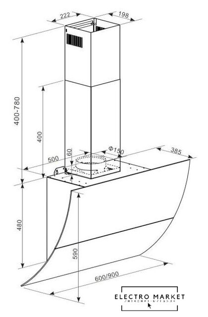 конструкция наклонная, монтаж настенный, ширина 89.8 см, управление сенсорное, производительность вытяжки 485 м³/ч, производительность мотора 704 м³/ч, цвет белый