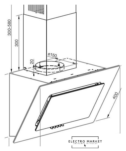 конструкция наклонная, монтаж настенный, ширина 59.8 см, управление механическое/кнопочное, производительность мотора 1030 м³/ч, цвет черный