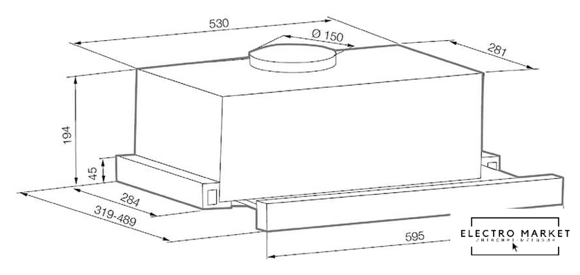 конструкция телескопическая, монтаж для встраивания, ширина 60 см, управление механическое/кнопочное, производительность мотора 650 м³/ч, цвет черный