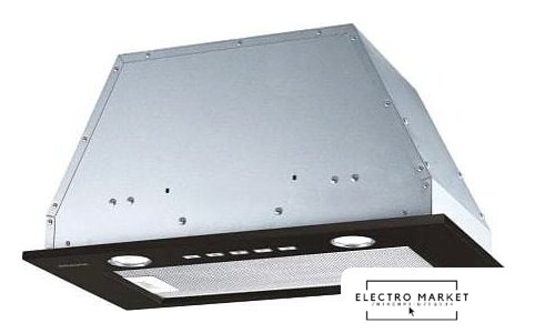 конструкция скрытая, монтаж для встраивания, ширина 52.6 см, управление механическое/кнопочное, производительность мотора 650 м³/ч, цвет черный