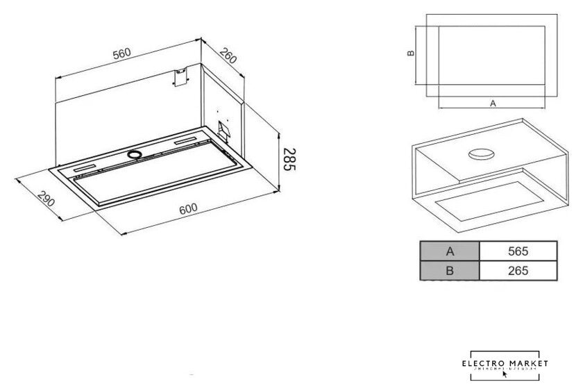 конструкция скрытая, монтаж для встраивания, ширина 51.4 см, управление электронное/кнопочное, производительность вытяжки 550 м³/ч, производительность мотора 1050 м³/ч, цвет черный
