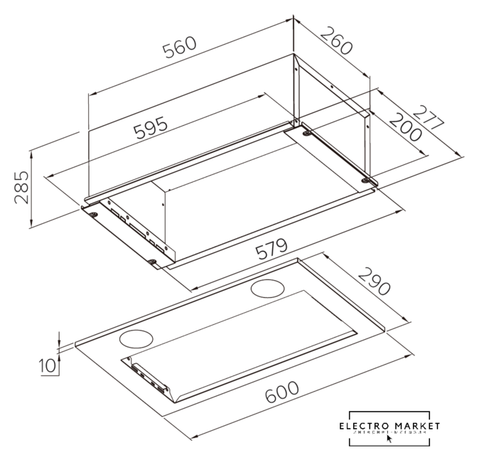 конструкция купольная, монтаж настенный, управление механическое/слайдерное, производительность мотора 650 м³/ч, ширина 60 см