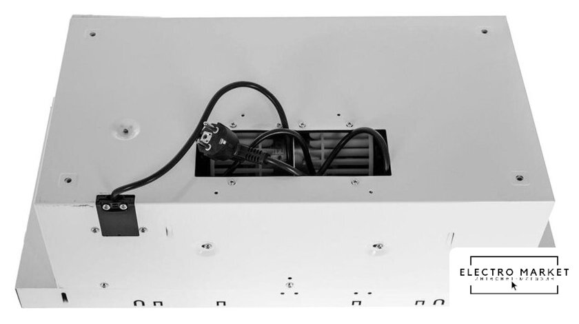 конструкция купольная, монтаж настенный, ширина 59.5 см, управление механическое/кнопочное, производительность мотора 620 м³/ч, цвет белый