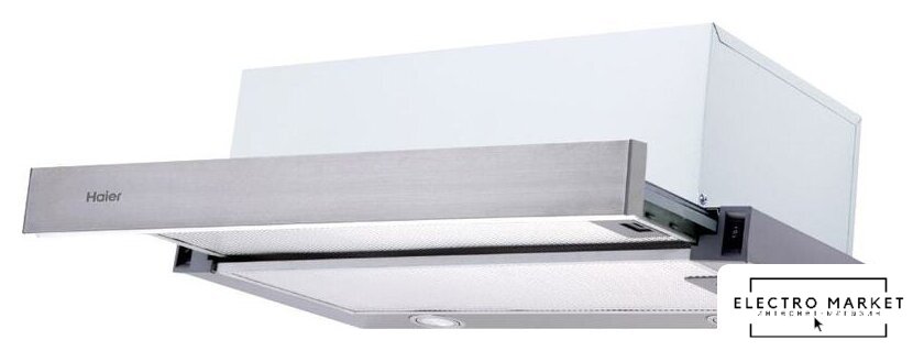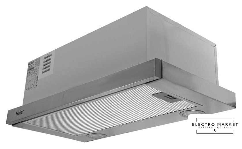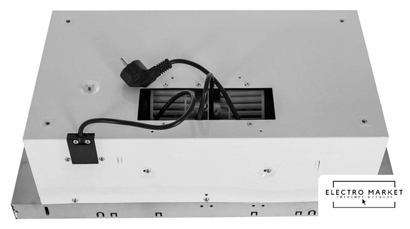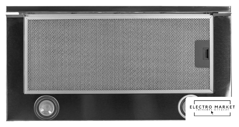конструкция скрытая, монтаж для встраивания, ширина 53 см, управление кнопочное, производительность мотора 1100 м³/ч, цвет нержавеющая сталь/черный