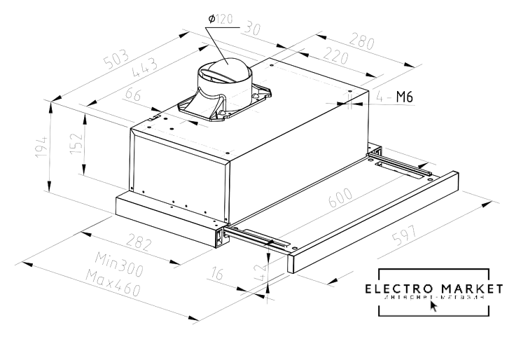 конструкция телескопическая, монтаж для встраивания, ширина 59.5 см, управление сенсорное, производительность мотора 410 м³/ч, цвет черный