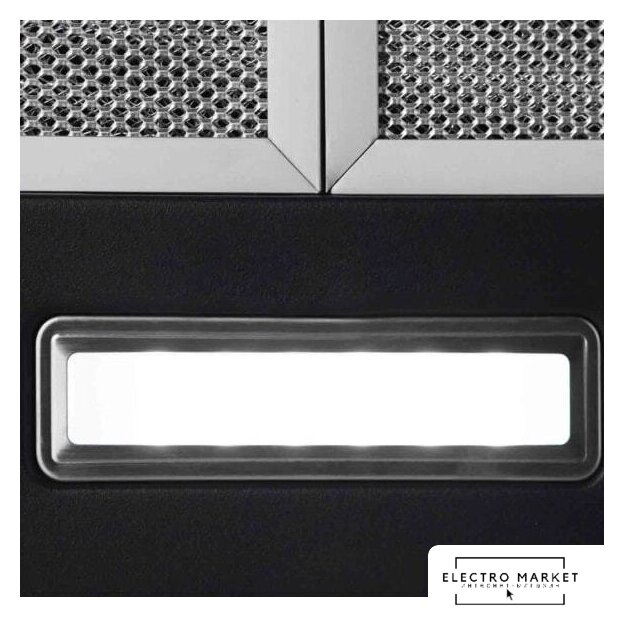 конструкция наклонная, монтаж настенный, ширина 60 см, управление сенсорное, производительность мотора 600 м³/ч, цвет черный