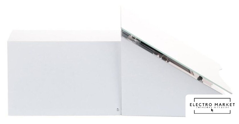 конструкция наклонная, монтаж настенный, ширина 89 см, управление сенсорное, производительность мотора 1000 м³/ч, цвет белый