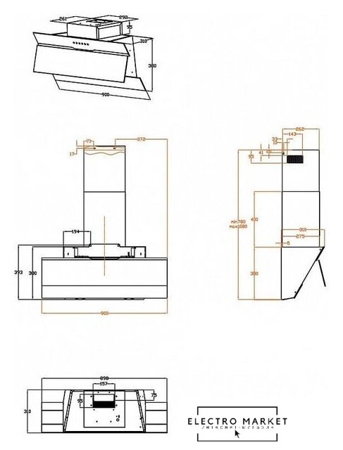 конструкция коробчатая, монтаж настенный, управление электронное/кнопочное, производительность мотора 1050 м³/ч, ширина 35.15 см