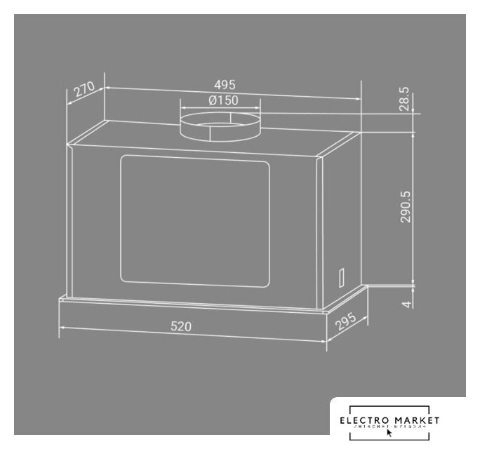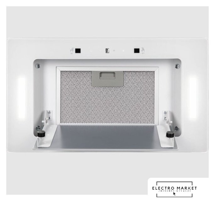 конструкция скрытая, монтаж для встраивания, ширина 59.8 см, управление механическое/кнопочное, производительность мотора 1150 м³/ч, цвет белый
