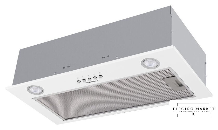 конструкция скрытая, монтаж для встраивания, ширина 52 см, управление электронное/кнопочное, производительность мотора 800 м³/ч, цвет кремовый