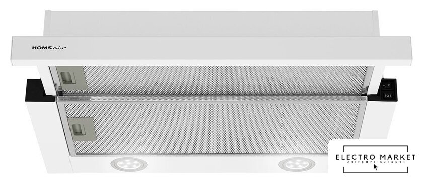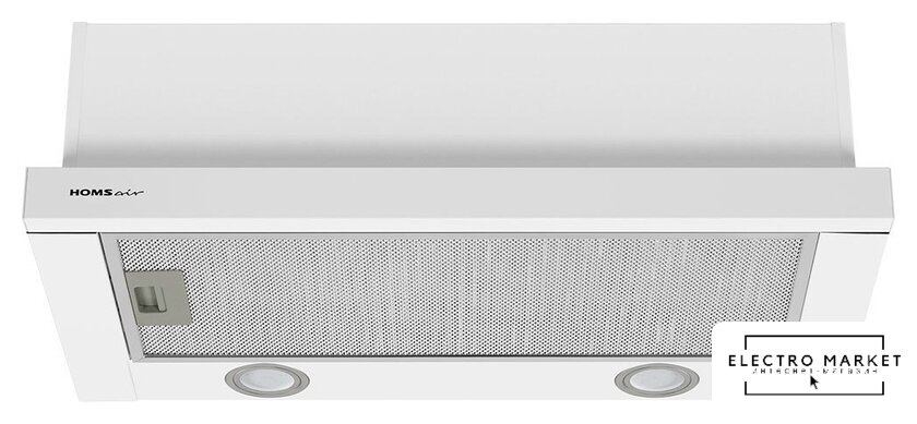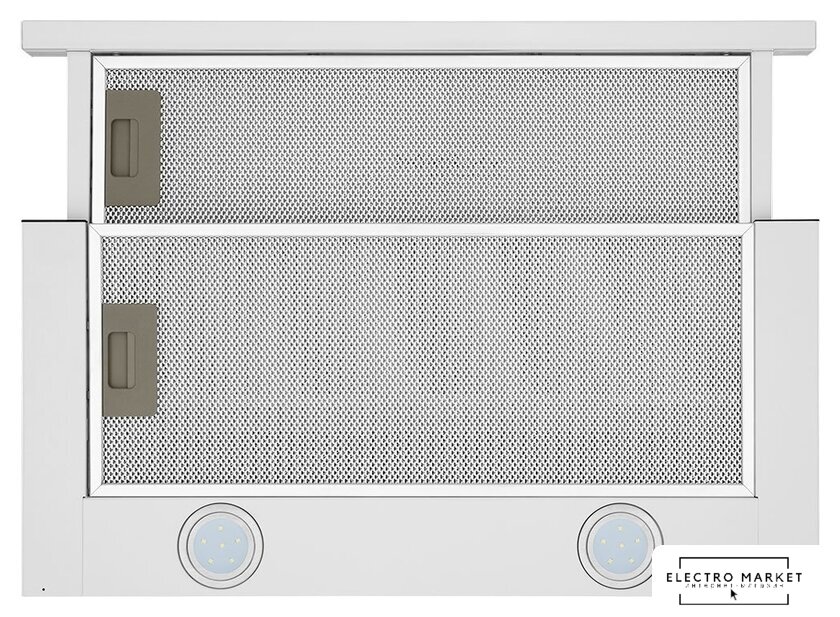 конструкция телескопическая, монтаж для встраивания, ширина 60 см, управление механическое/кнопочное, производительность вытяжки 177 м³/ч, производительность мотора 520 м³/ч, цвет белый