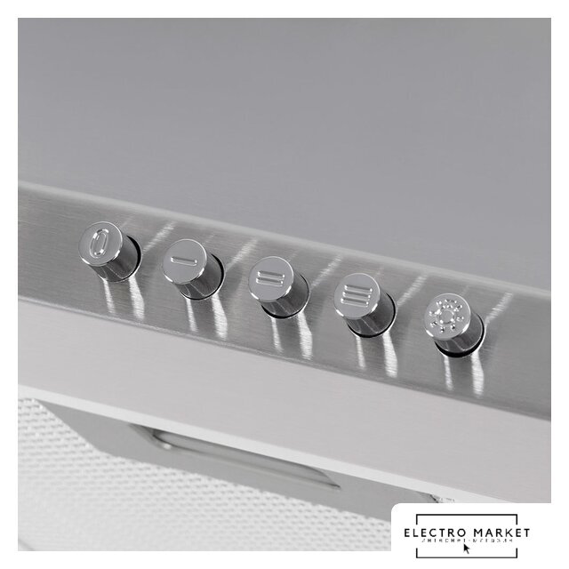 конструкция скрытая, монтаж для встраивания, ширина 52 см, управление электронное/кнопочное, производительность мотора 800 м³/ч, цвет кремовый