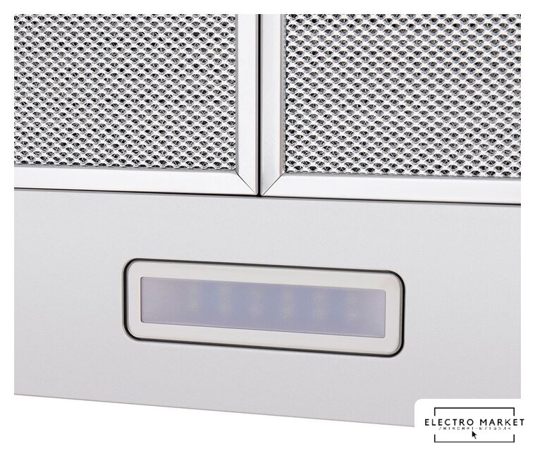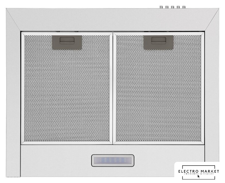 конструкция скрытая, монтаж для встраивания, ширина 59.8 см, управление механическое/кнопочное, производительность мотора 850 м³/ч, цвет белый