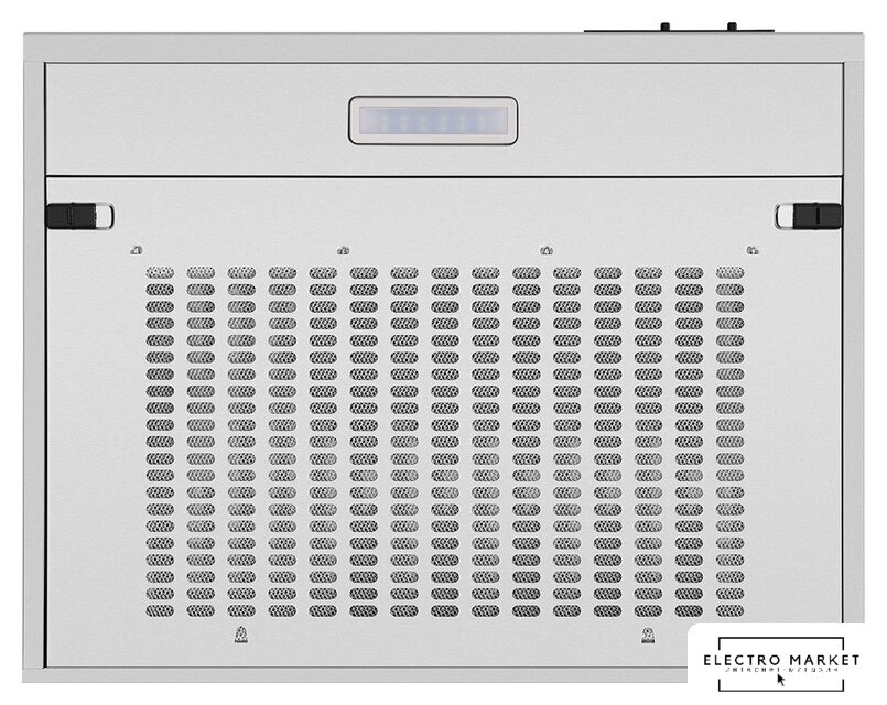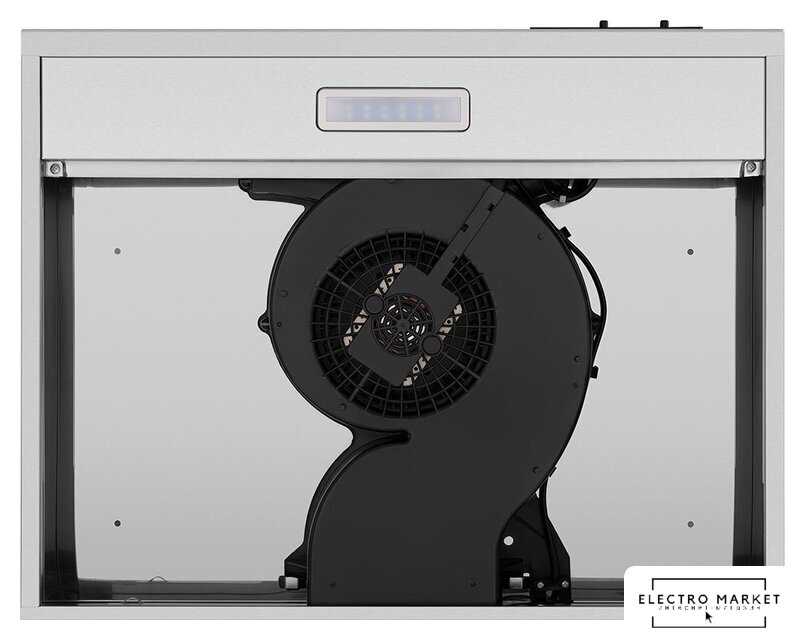 конструкция скрытая, монтаж для встраивания, ширина 59.8 см, управление механическое/кнопочное, производительность мотора 1050 м³/ч, цвет белый