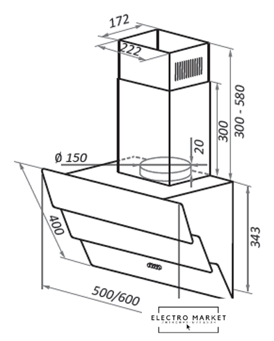 конструкция наклонная, монтаж настенный, ширина 60 см, управление механическое/кнопочное, цвет черный