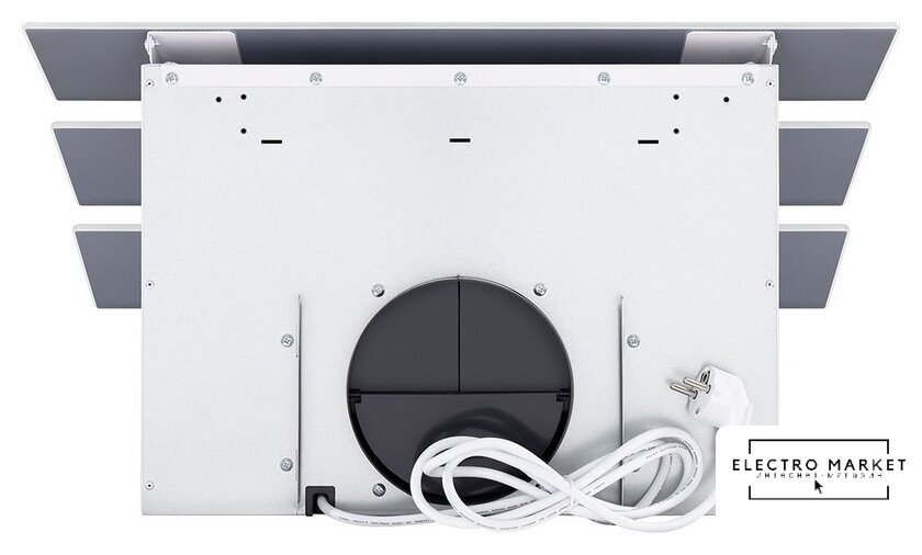 конструкция Т-образная, монтаж настенный, ширина 89.5 см, управление сенсорное/дистанционное, производительность мотора 1260 м³/ч, цвет нержавеющая сталь/черный