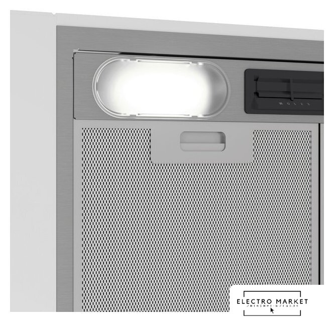 конструкция телескопическая, монтаж для встраивания, ширина 60 см, управление механическое/кнопочное, производительность мотора 600 м³/ч, цвет нержавеющая сталь/черный