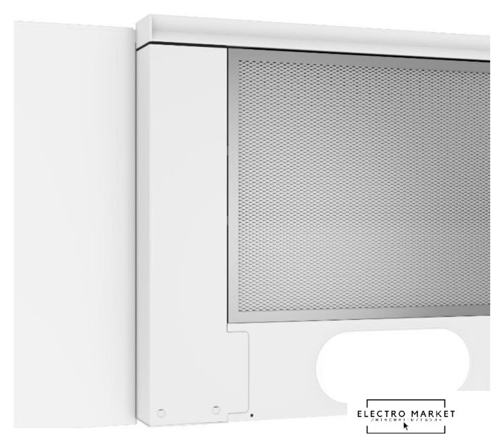 конструкция купольная, монтаж настенный, ширина 60 см, управление механическое/кнопочное, производительность мотора 650 м³/ч, цвет белый